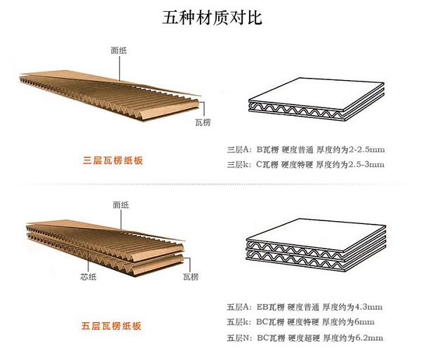 而K,A,B等等都是指纸的质量等级,分别是K纸,A纸,B纸,C纸,其中K纸最好,K>A>B>C,K3B就是说,面纸是K纸,底纸是B纸.但是,这里所说的K,A,B,C国家标准里并没有明确规定,都是业内同行根据以往经验来说的.至于纸板薄的问题,应该是纸板的坑的问题,坑越精细纸板越薄,但强度越高.